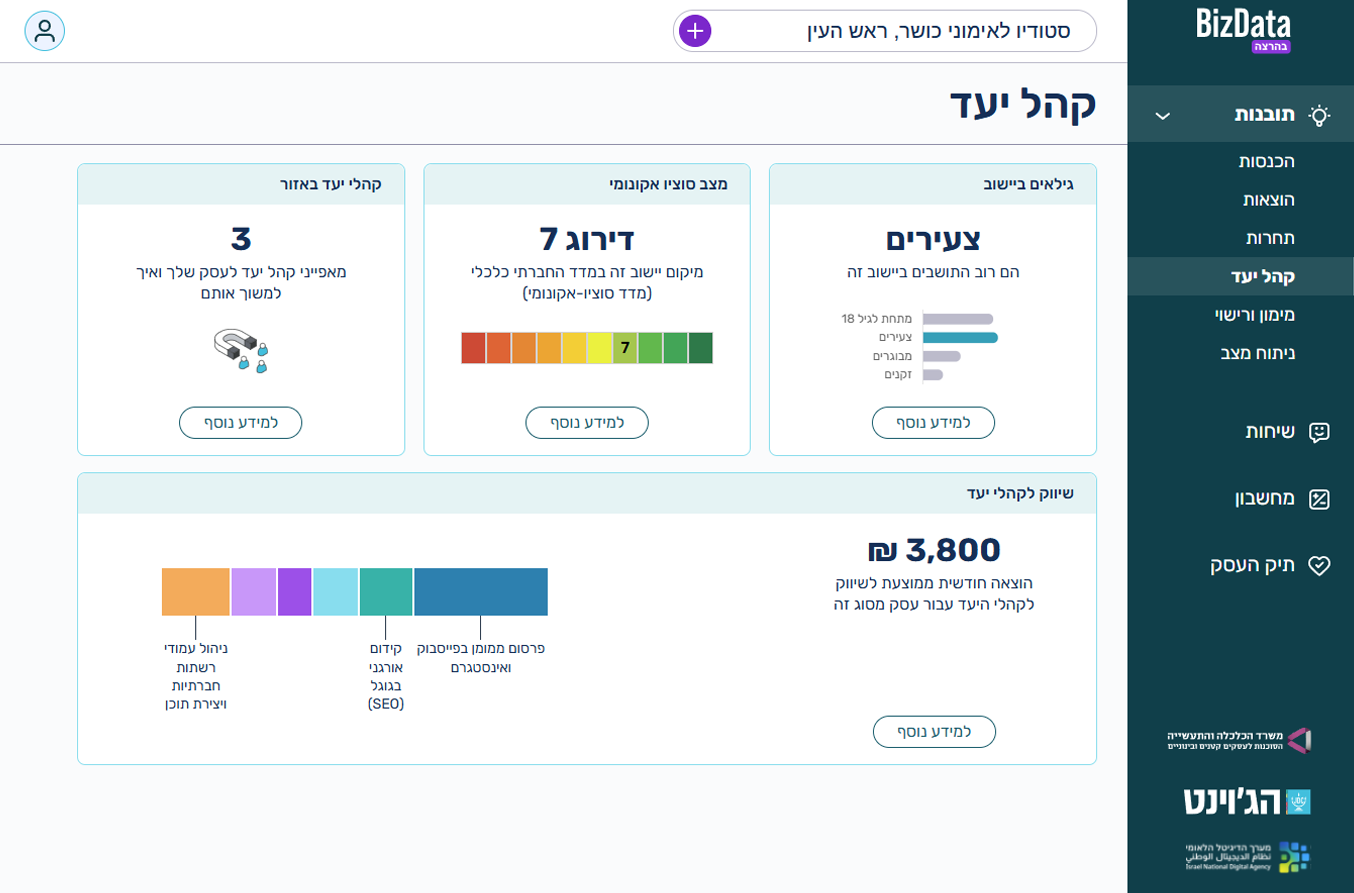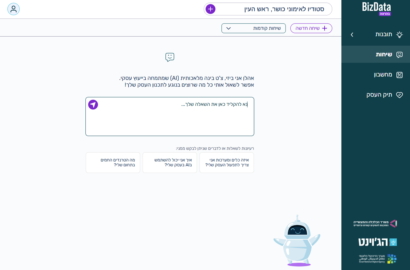 Bizdata is an innovative AI-powered platform that helps entrepreneurs, small business owners, and consultants assess the feasibility of opening a new business and build personalized business plans – using real-time data from governmental and administrative sources.